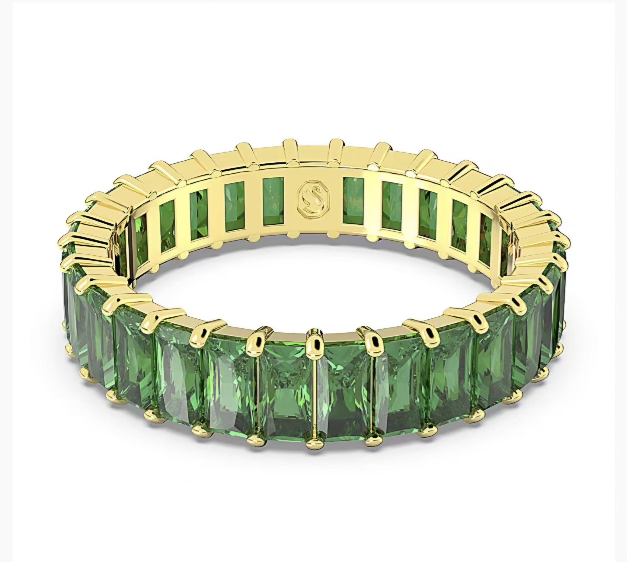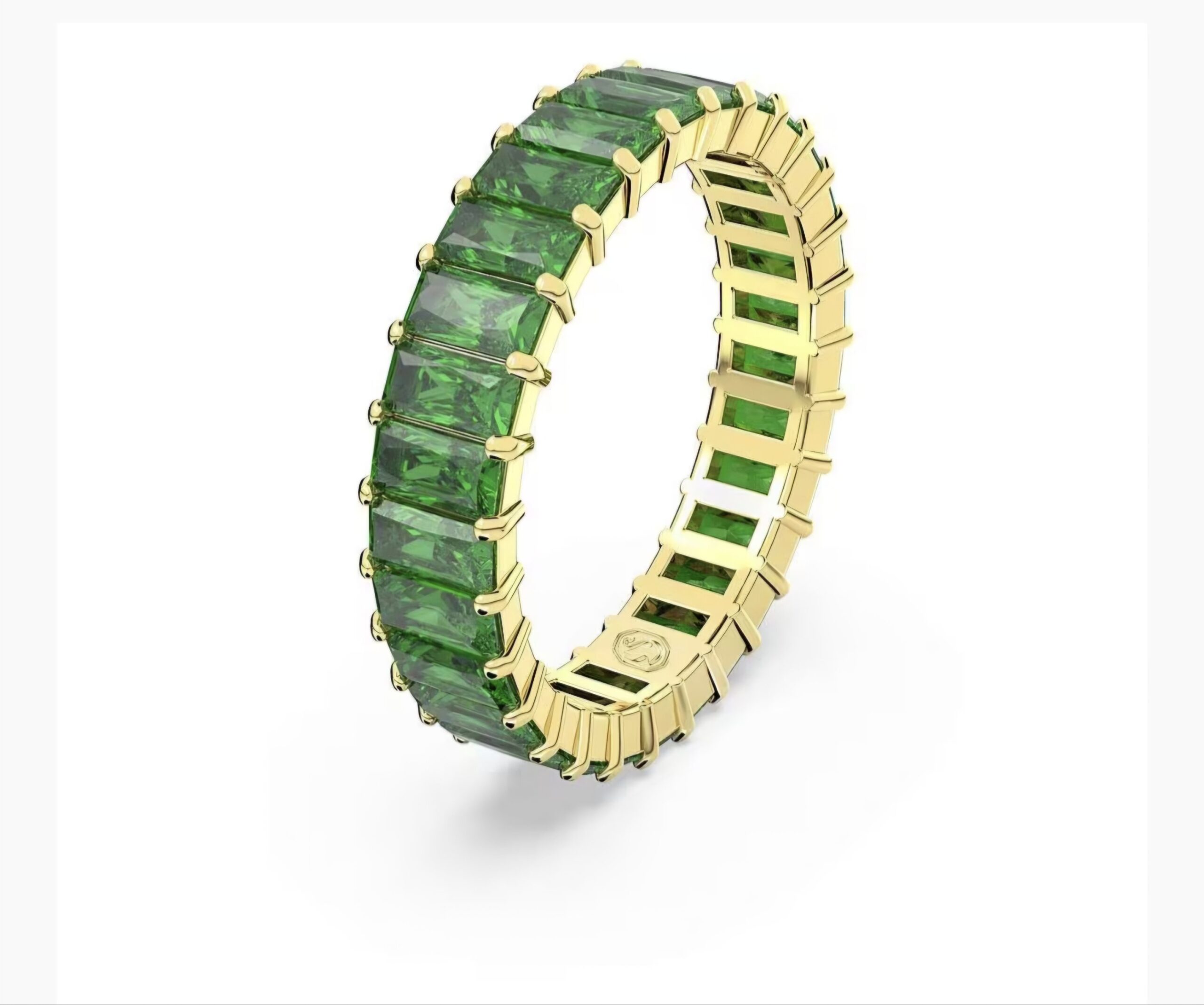 Anello Swarovski Matrix, Taglio baguette, Verde, Placcato color oro. Misura 60 – EU 20. Realizzato con un elegante cerchio di cristalli, questo anello Matrix รจ unโaffascinante aggiunta al tuo portagioielli. Pietre a taglio Baguette Princess di colore verde intenso sono incastonate su una fascia placcata oro, con una lavorazione che unisce scienza e magia.