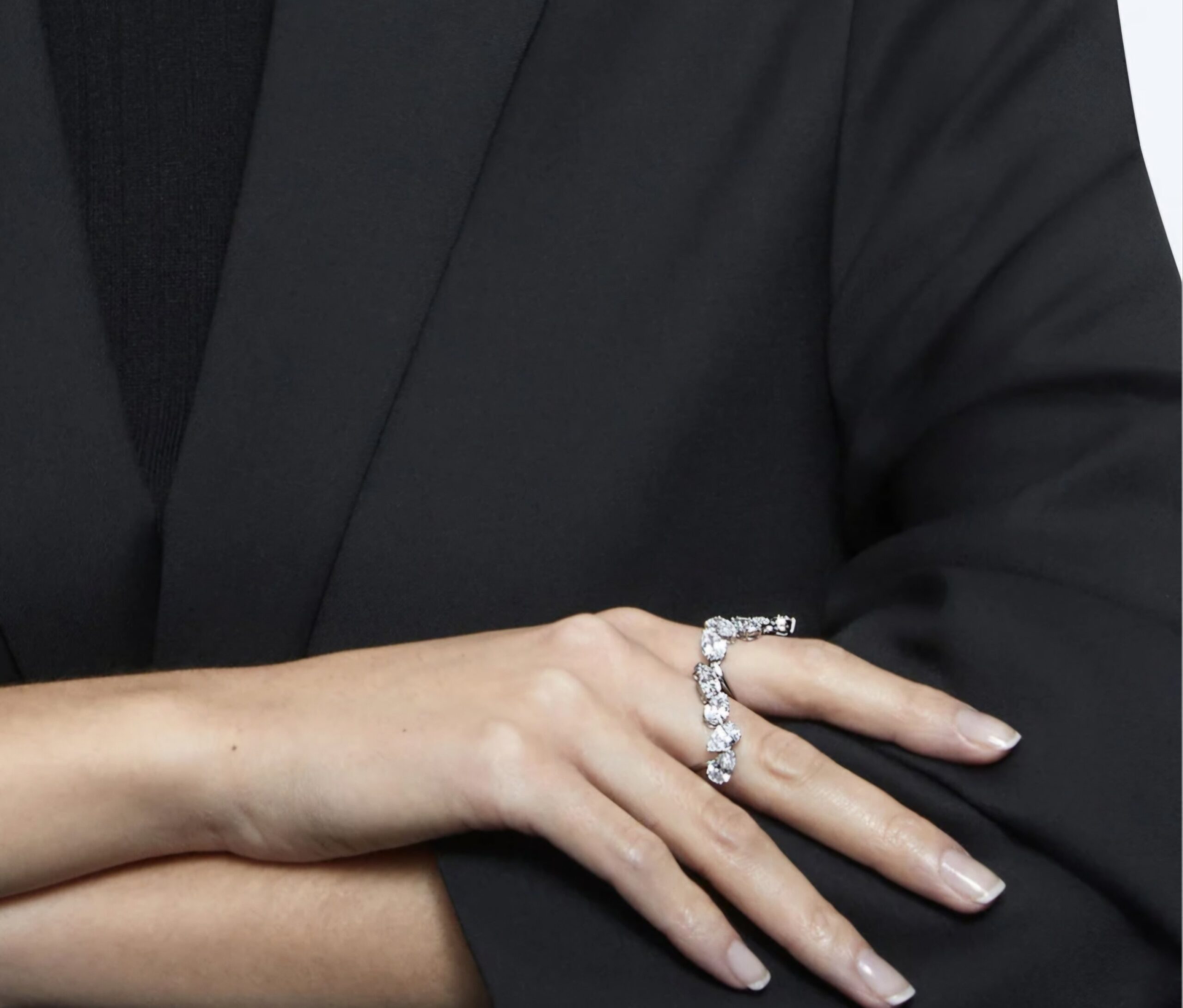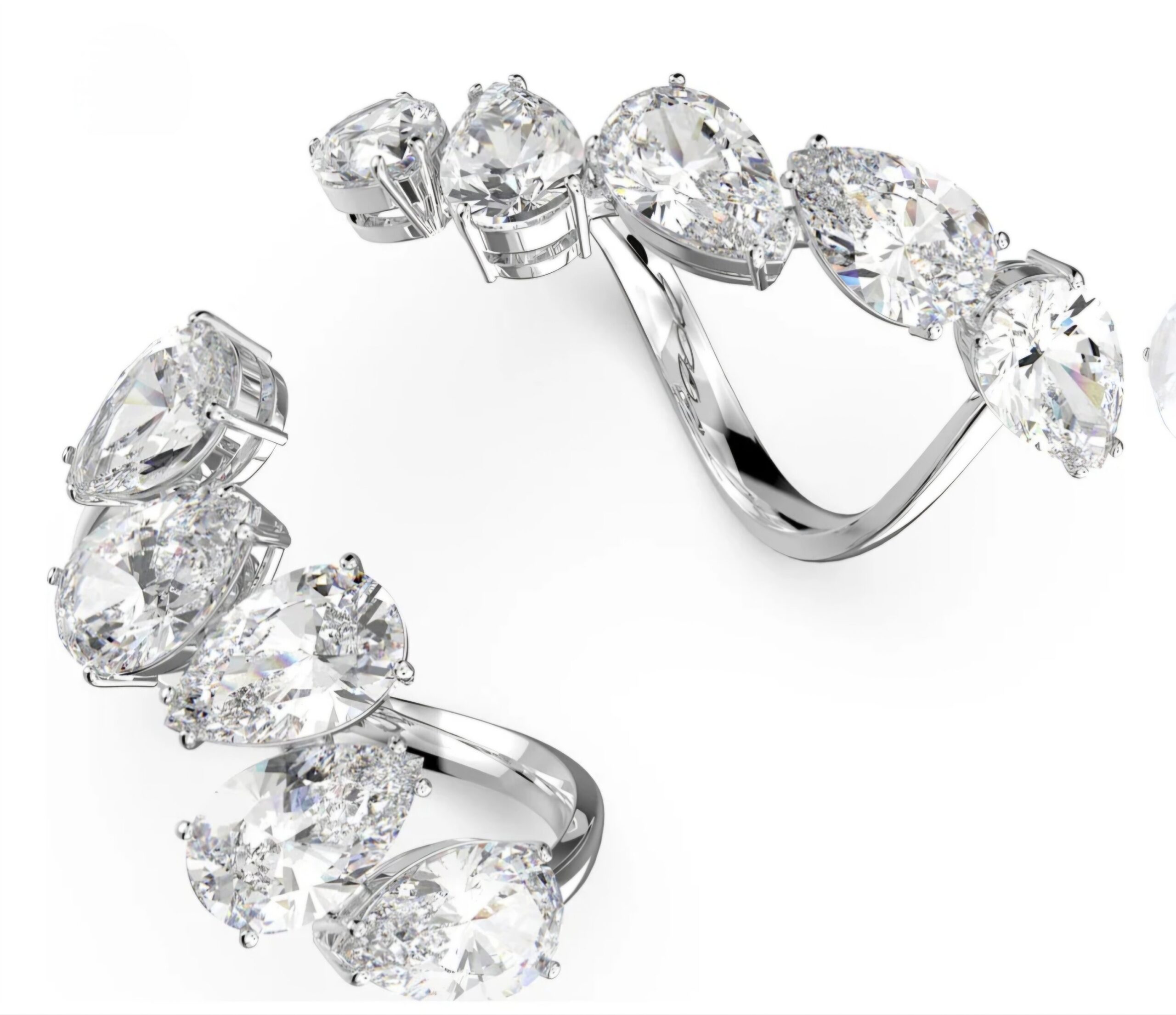 Concepiti come set, questi anelli da cocktail offrono infinite possibilità di abbinamento. Il design minimalista, realizzato con cristalli trasparenti di diversi tagli, crea un impatto massimo se indossati su una sola mano. Indossate questi anelli sopra eleganti guanti di raso o velluto per un look da sera impeccabile. Questo set di anelli è stato disegnato per la famiglia Millenia dalla Direttrice Creativa Giovanna Engelbert per la Collezione.
