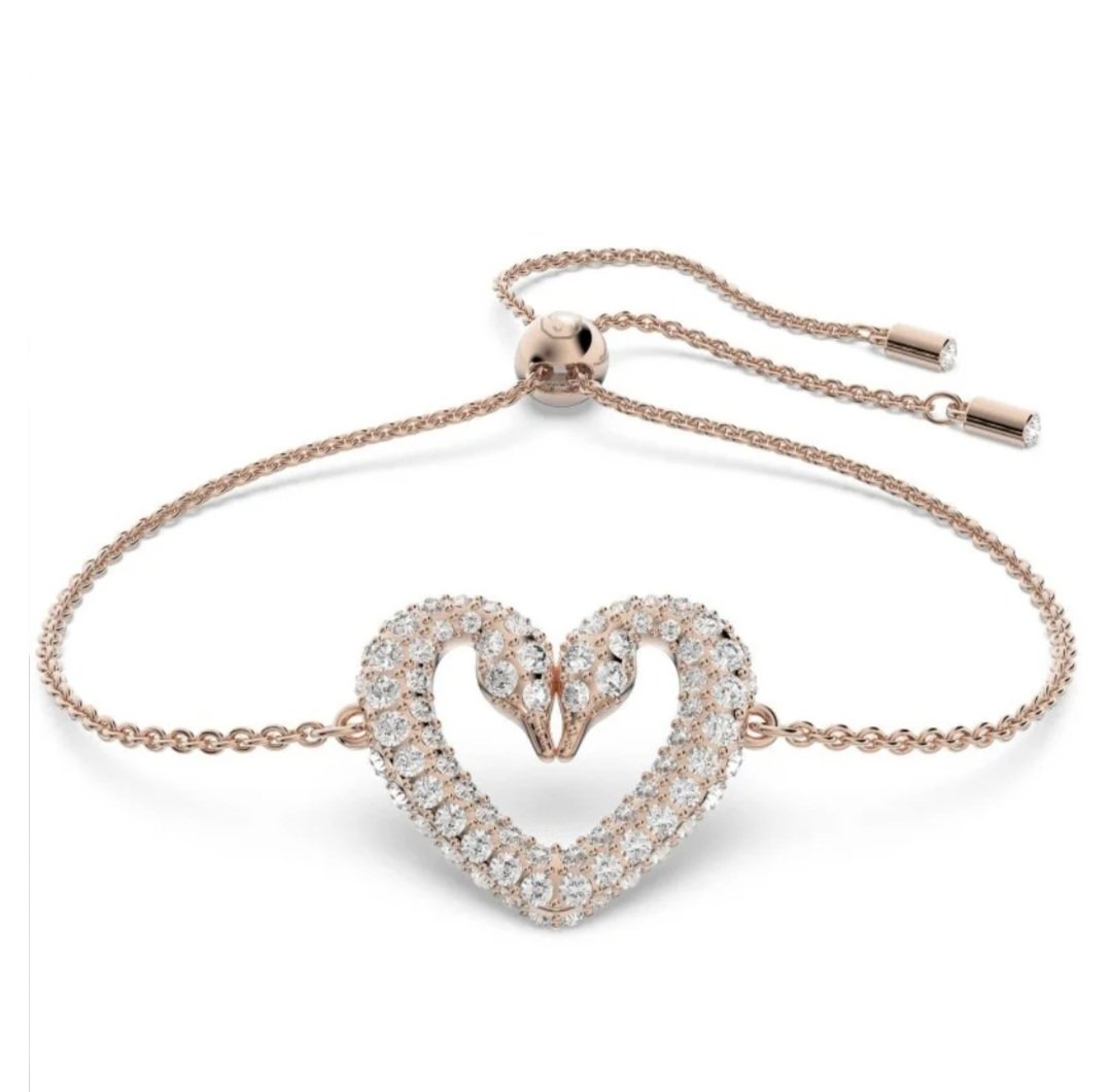 Simbolo di amore eterno, questo elegante bracciale a forma di cuore è caratterizzato dall’iconico cigno Swarovski. Questo design placcato oro rosa cattura gli sguardi con una raffinata montatura pavé in cristallo ed è dotato di un meccanismo di chiusura regolabile per personalizzarlo a misura del tuo polso.