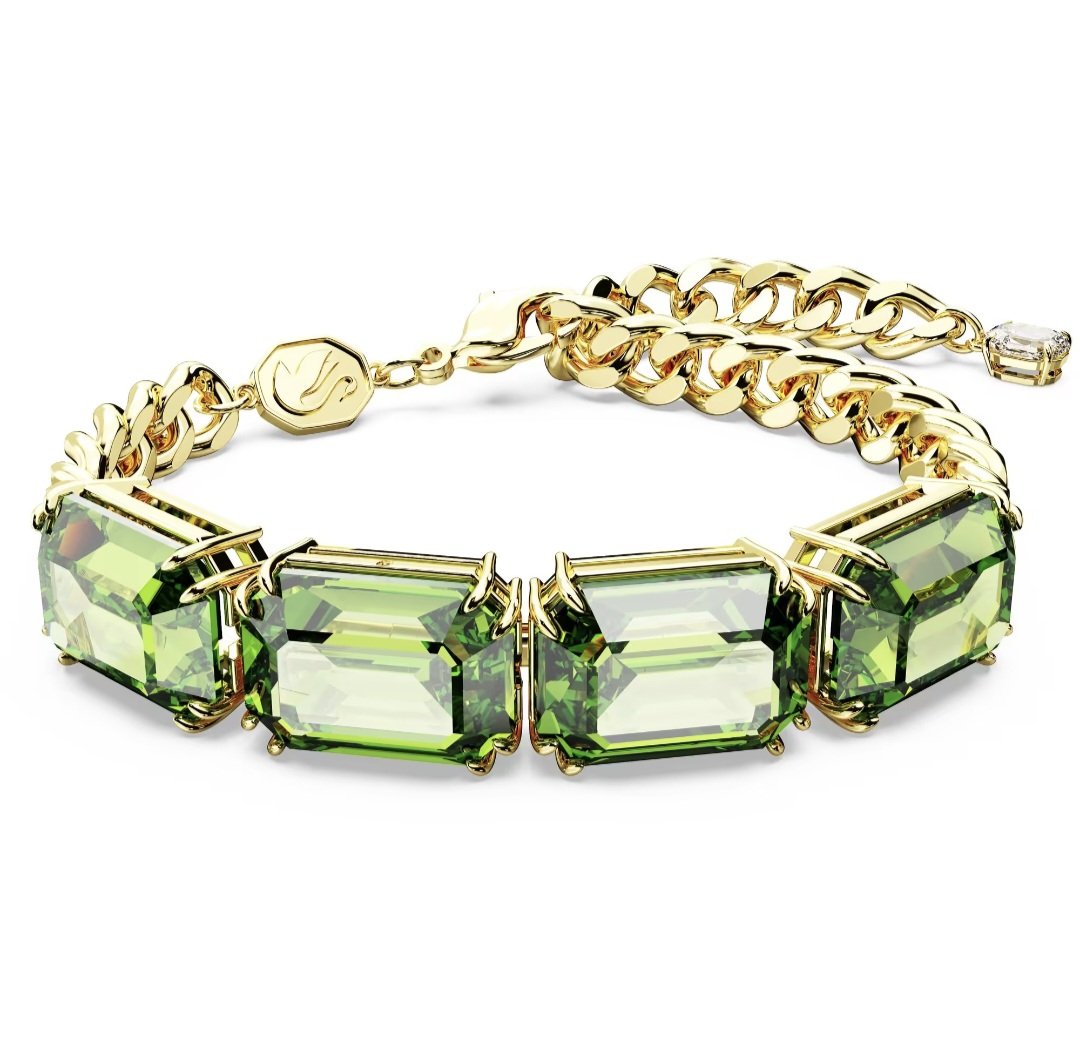 Braccialetto di Swarovski, taglio ottagonale , con finitura in in tono dorato Zirconia, di colore verde.Lunghezza (minima – massima): 19 – 19 cm.