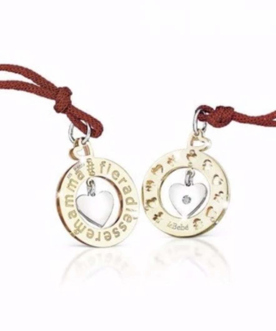 Il ciondolo Le Bebè “Cuore di Mamma” LBBCDM17 è un gioiello elegante e simbolico dedicato all’amore tra madre e figli. Realizzato in oro giallo e oro bianco 9 carati, presenta una raffinata lavorazione traforata con le sagome di un bimbo, una bimba e piccoli cuori. Al centro del ciondolo si trova un cuore con un piccolo diamante taglio brillante, che dona luce e preziosità al gioiello. Sul retro è incisa la frase “#fieradiesseremamma”, che rende questo pendente un regalo speciale per celebrare la maternità. Il ciondolo ha un diametro di circa 1,7 cm ed è spesso accompagnato da un cordino, perfetto da indossare ogni giorno o come ricordo affettivo.