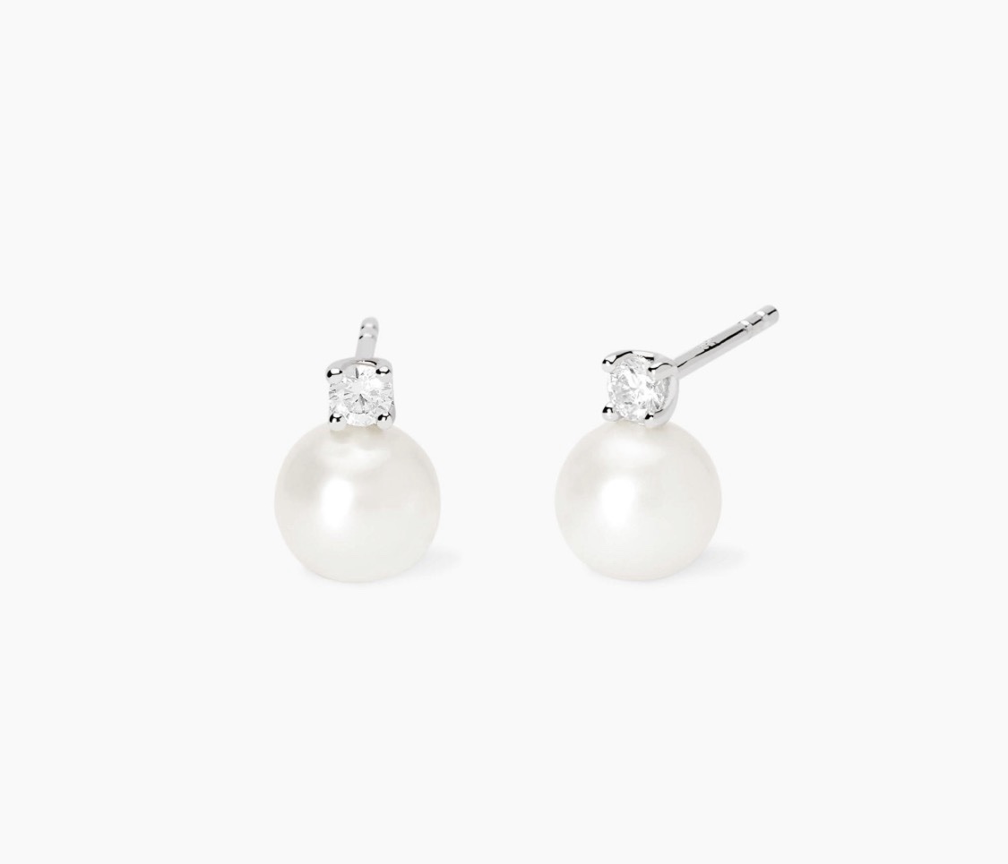 Orecchini in argento rodiato con perle coltivate e diamanti lab-grown 0,06 ct.