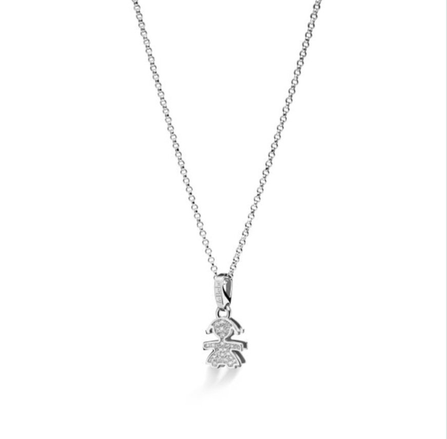 Ciondolo con catena sagoma bimba in oro bianco 18kt con pavé di diamanti 0,11 ct
