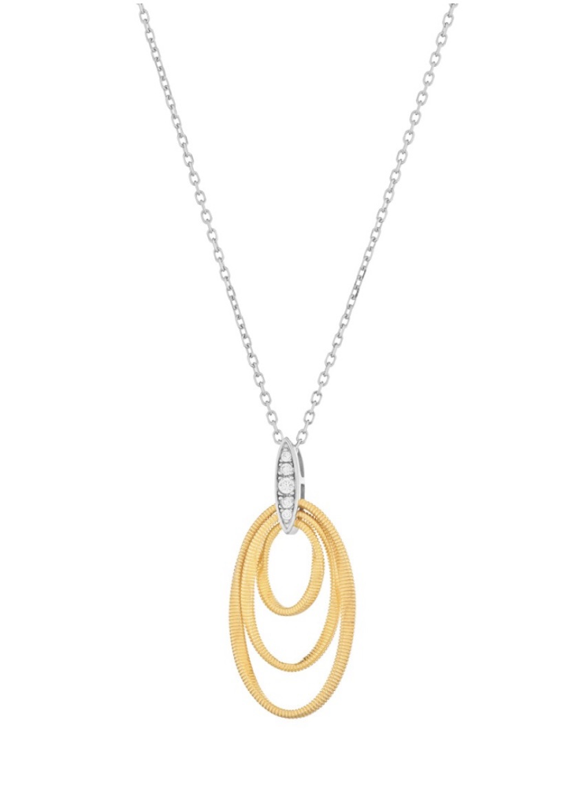 La Collana bagliori – Twist è realizzata in argento 925 dorato ed impreziosita con pavè di pietre bianche.
