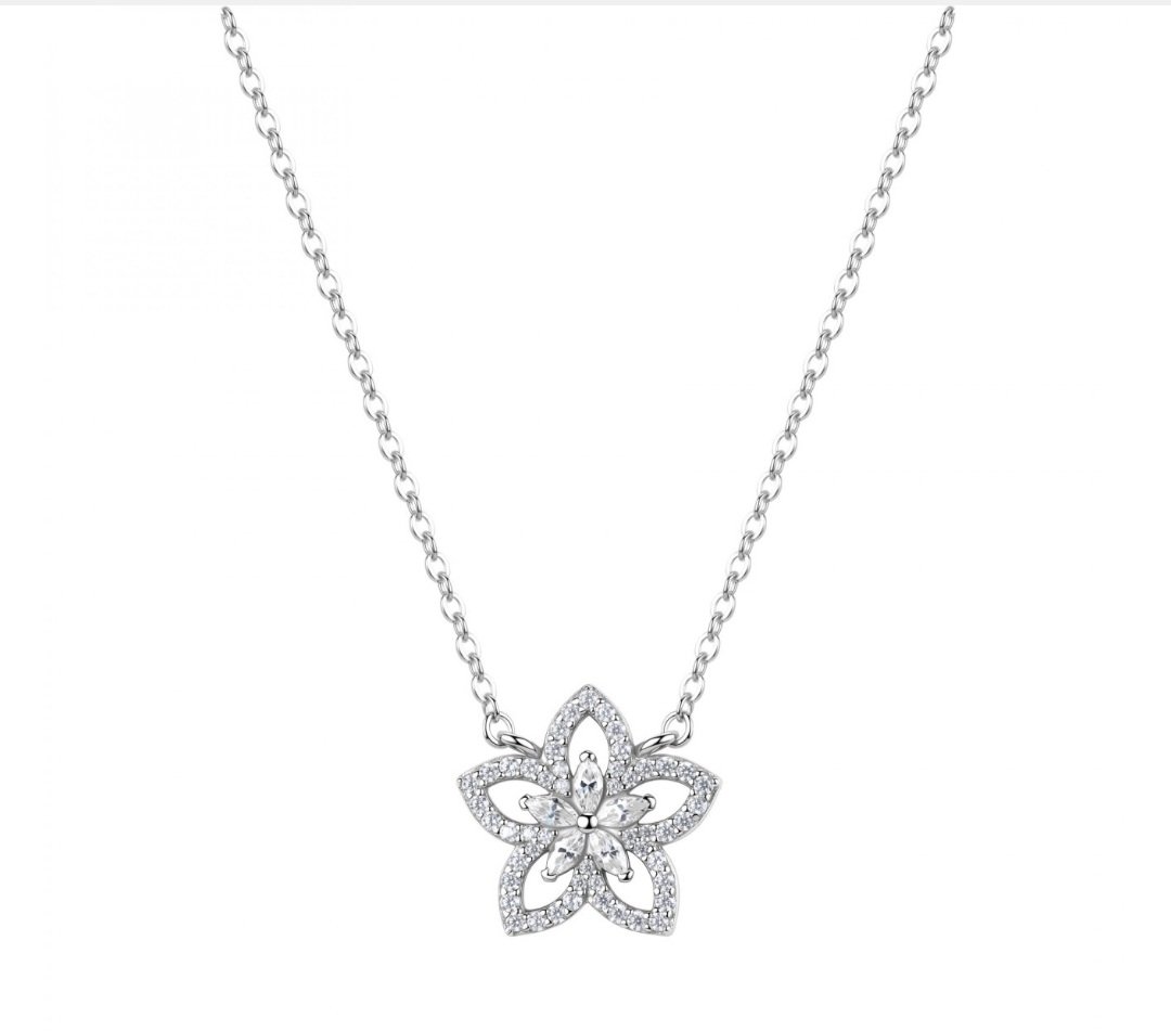 Collana Rosato collezione Gaia in argento 925millesimi con fiore e 55 cibic zirconia bianchi.