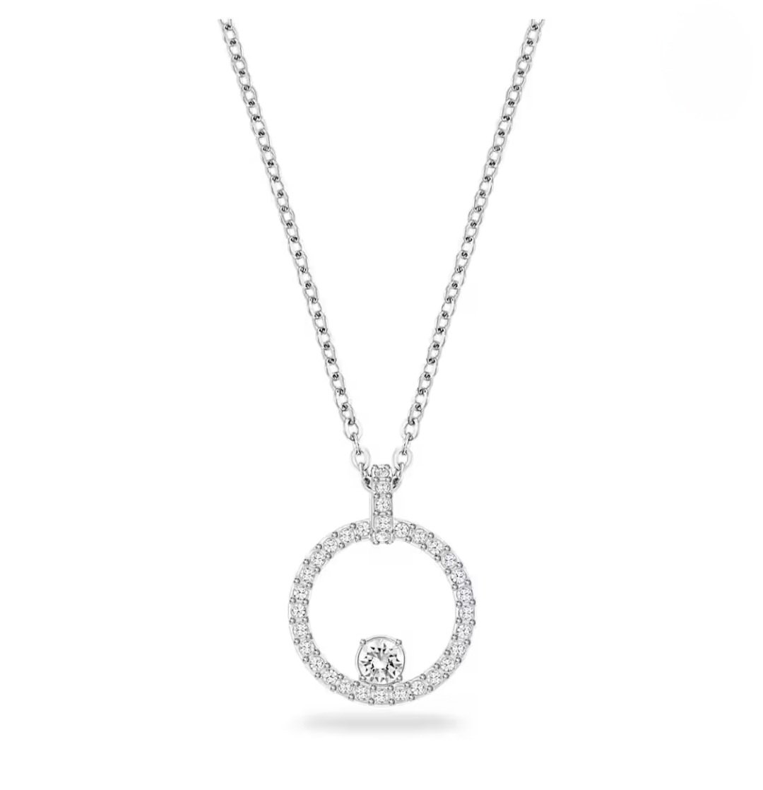 Una rivisitazione raffinata e contemporanea di un classico intramontabile: il pendente tondo. Il gioiello è proposto nella brillantezza del pavé di Clear Crystal, a cui il metallo rodiato aggiunge una nota moderna. Per interpretare l’attualità dello stile sovrapposto indossatelo con un pendente lungo. Il pendente misura 1,5 x 2 cm ed è abbinato ad una catena di 38 cm.