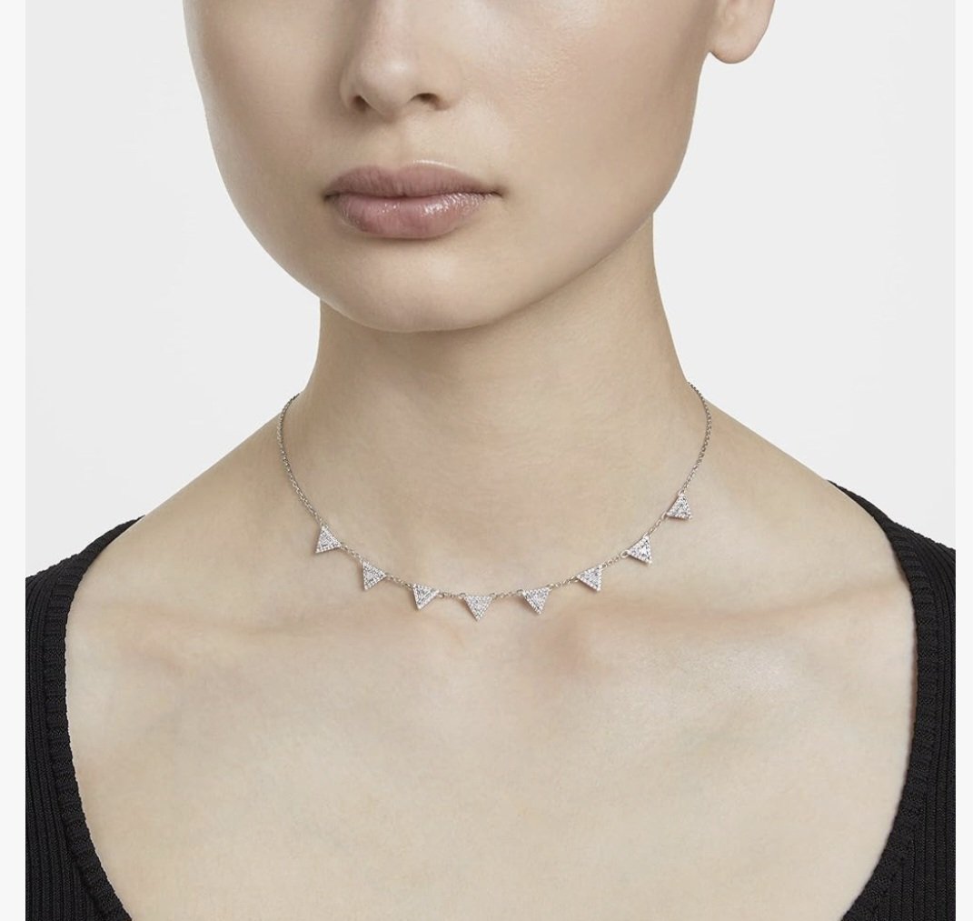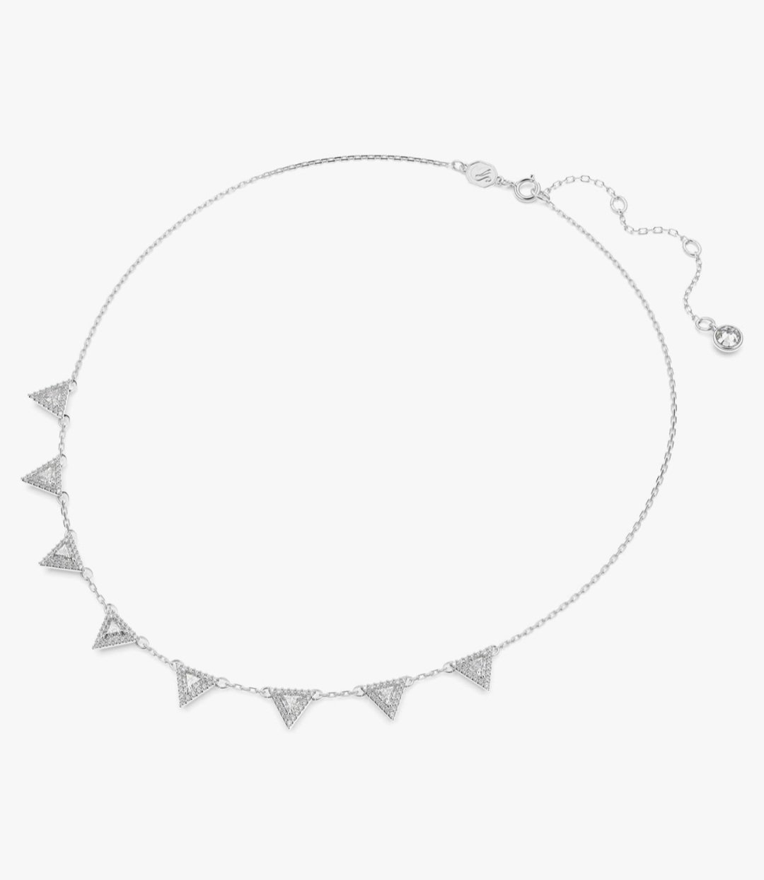 Dai libero sfogo al tuo spirito punk con questa collana della famiglia Ortyx. Ogni pietra triangolare, dal taglio a gradini, è incastonata a mano e circondata da un accattivante pavé. Il tutto è completato da una catena rodiata e una piccola chiusura a moschettone. Stile e grinta.