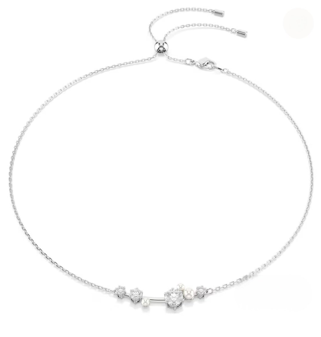 Proietta il tuo stile verso le stelle con questa versatile creazione Constella. Il design placcato rodio presenta uno speciale meccanismo a scorrimento che ti consente di indossare il gioiello come collana o come girocollo. Sul davanti, le Swarovski Zirconia e le Crystal Pearls Swarovski di diverse dimensioni sembrano quasi fluttuare tra le discrete articolazioni, creando un look di meraviglia cosmica.