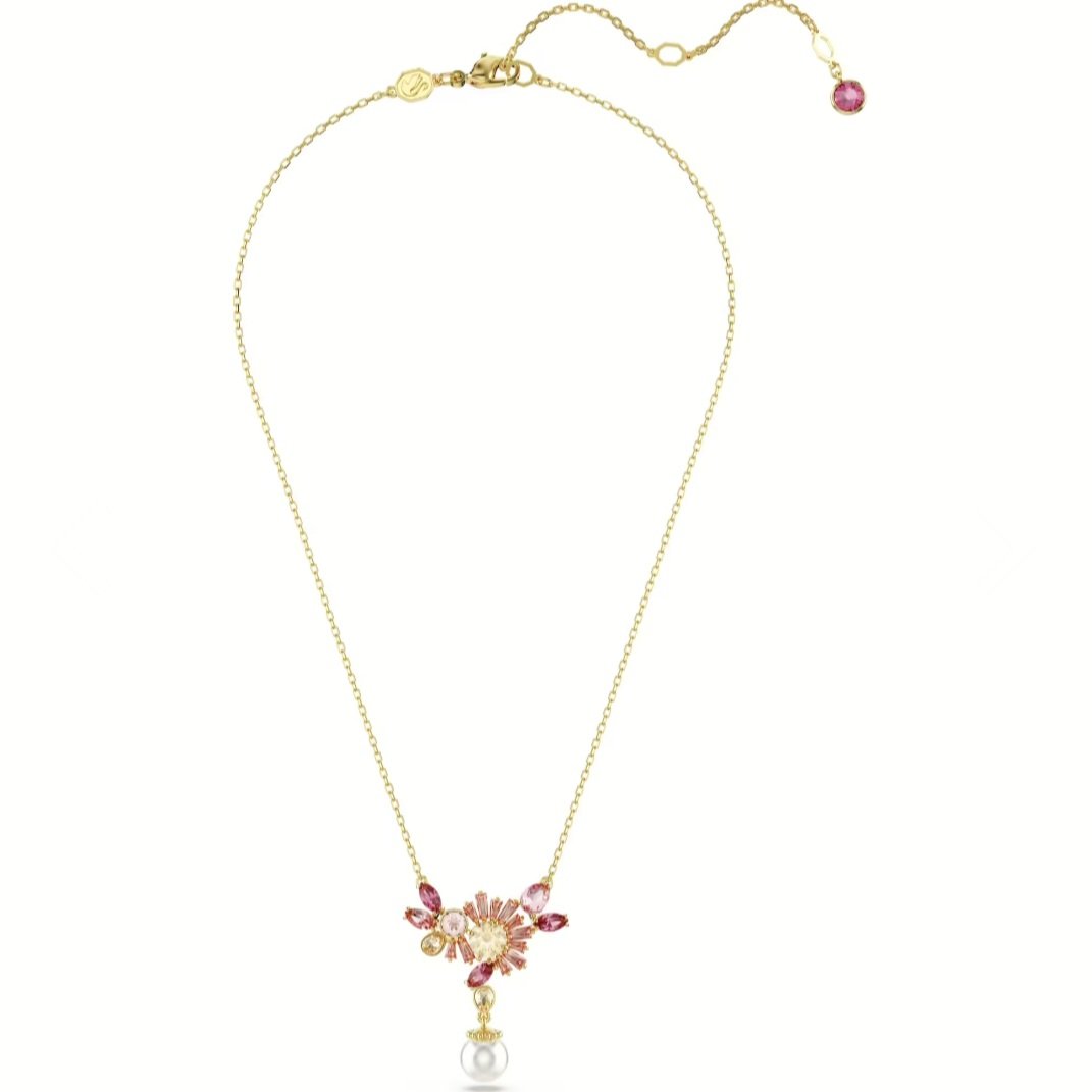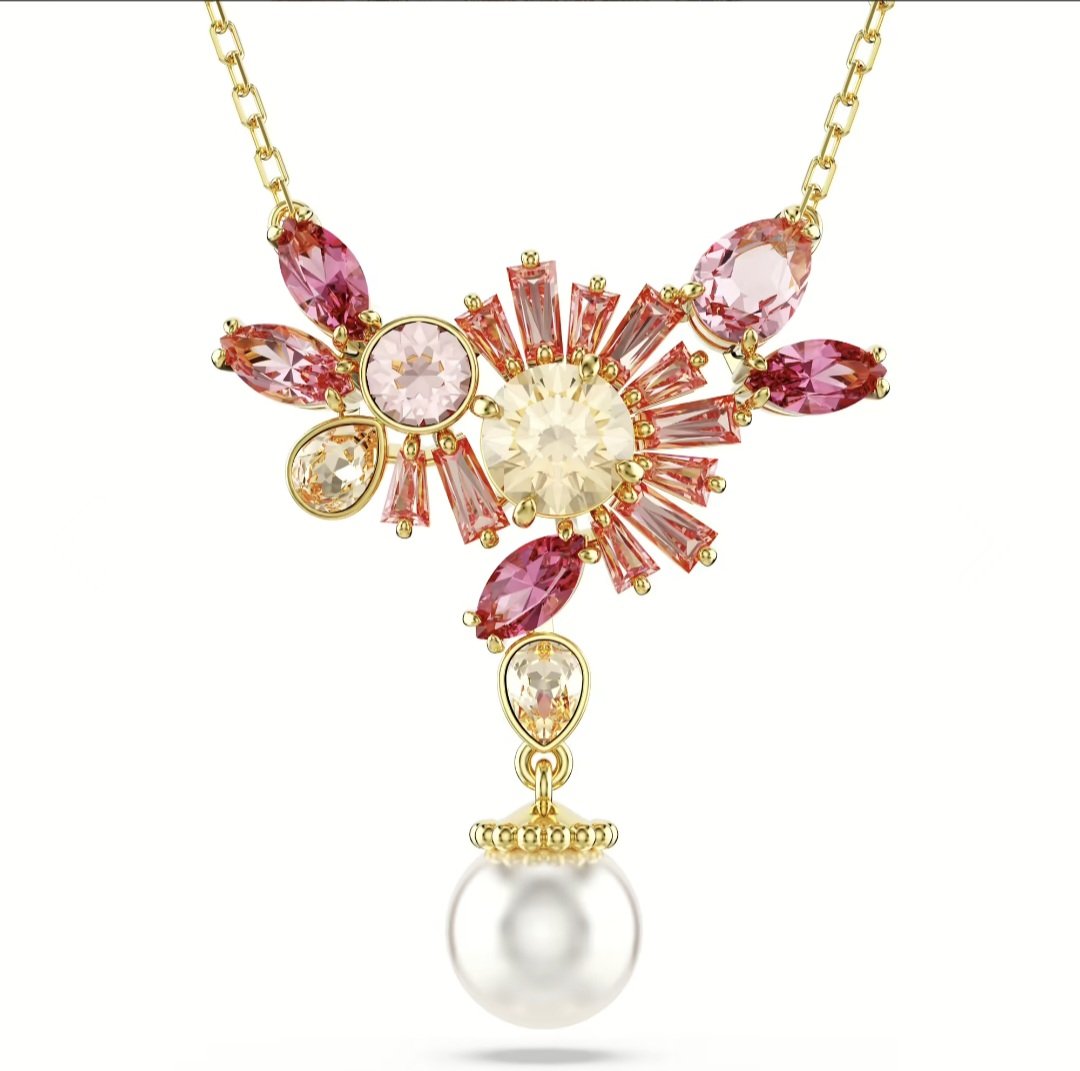 Collana di Swarovski della collezione GemaFinitura in tono dorato con cristialli di colore Rosa. Pendente Gema, Taglio misto, Crystal Pearl, Fiore, Rosa, Placcato color oro. Lunghezza (minima – massima): 42 – 49 cm.
