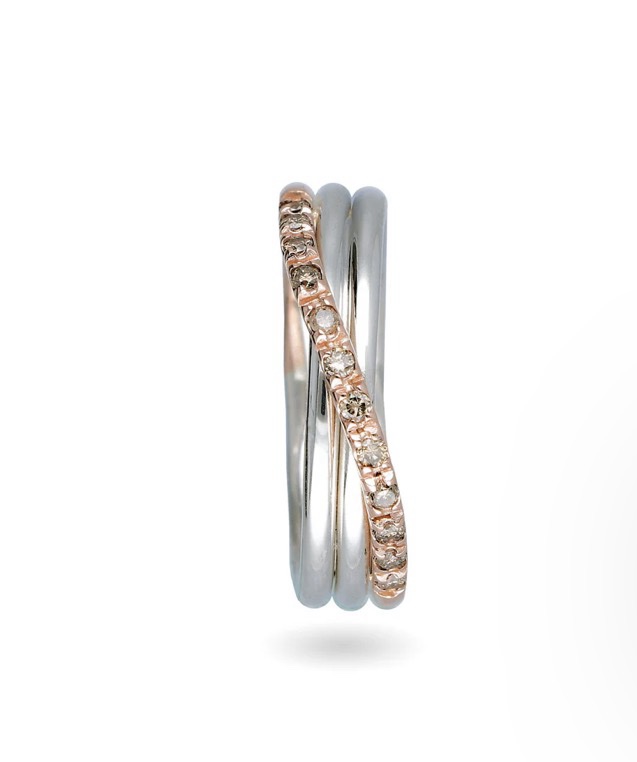 Prodotto a mano da sapienti orafi artigiani รจ caratterizzato da un Filo in Oro Rosa 9Kt che abbraccia due fili in Argento 925 arricchito al Palladio, Nichel free.
