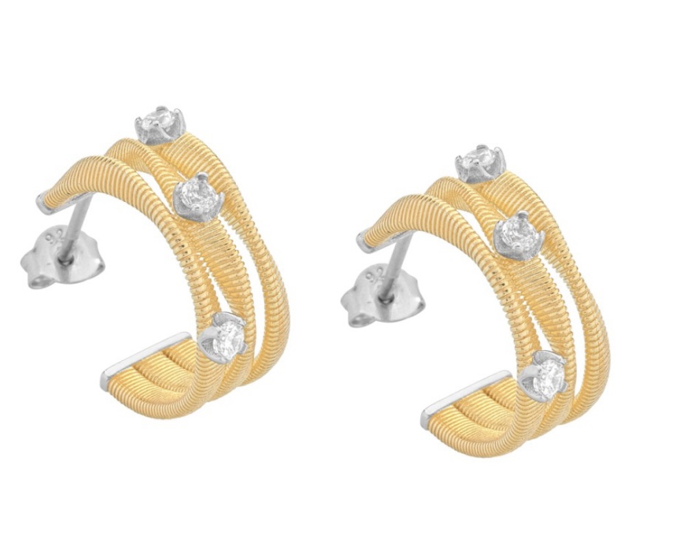 Gli Orecchini bagliori – Twist sono in argento 925 dorato con un pavè di pietre bianche. La lunghezza è di circa 1,7cm.