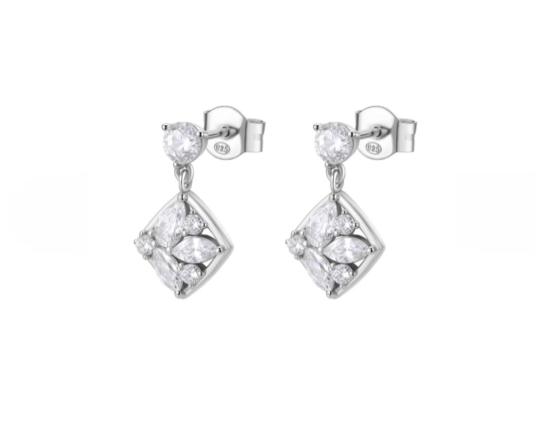 Orecchini pendenti in argento 925‰, 14 cubic zirconia bianchi.