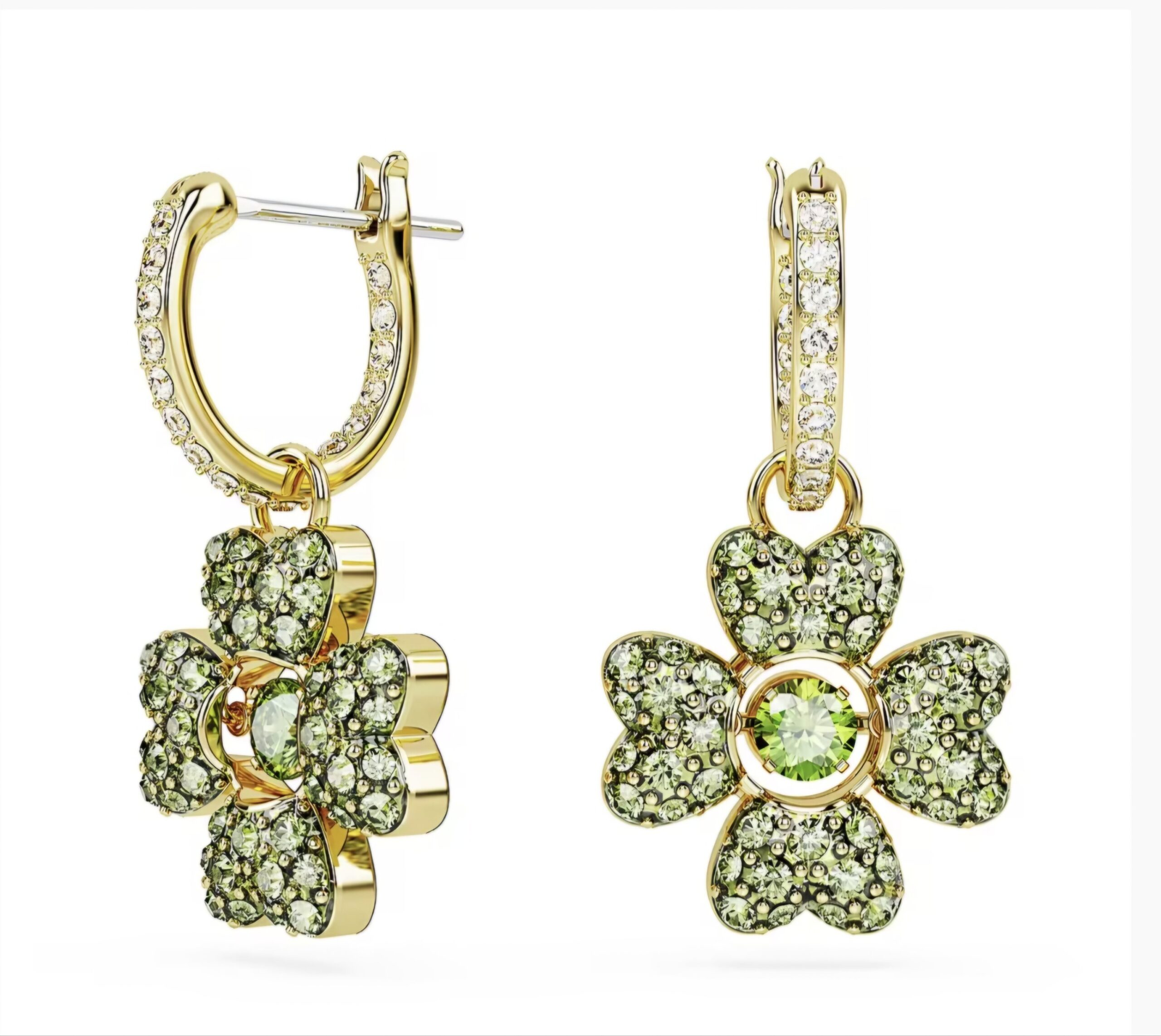 Orecchini pendenti di Swarovski, quadrifoglio, verdi, , con finitura in in tono dorato Zirconia, di colore verde.