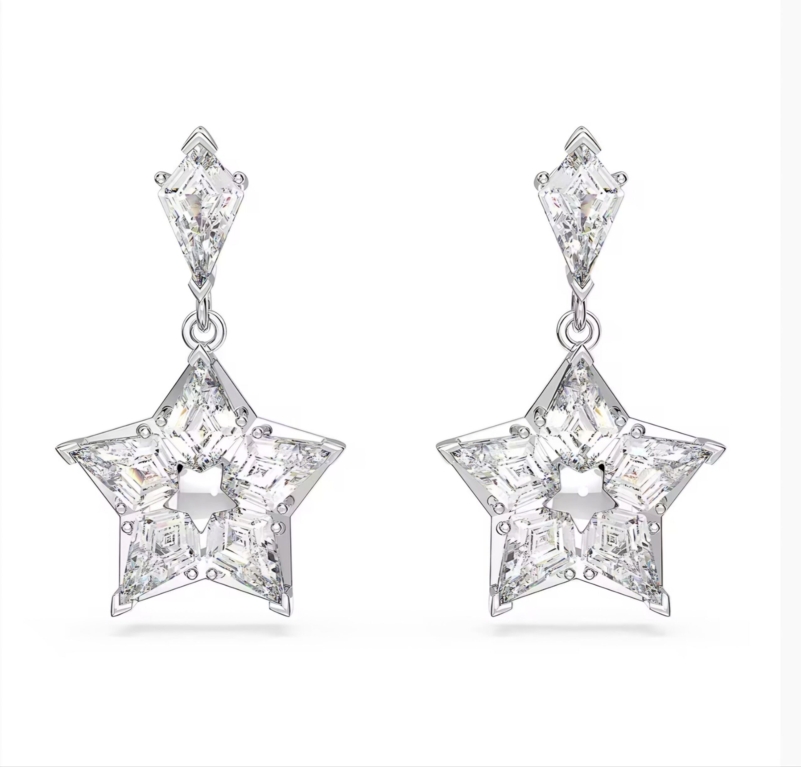 Orecchini da donna di Swarovski della collezione Stella. Orecchini pendenti di colore argento con stella con cristalli di colore bianco.