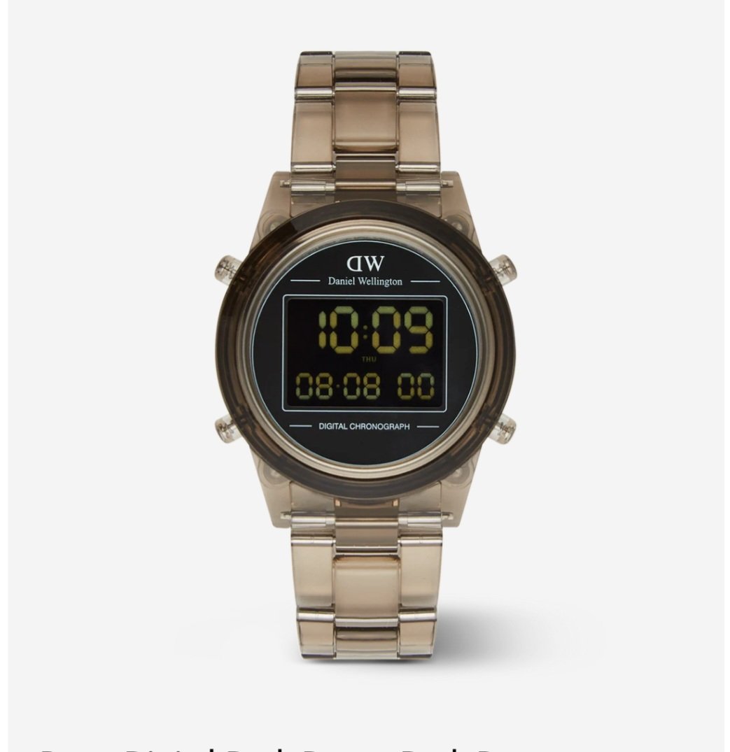 Orologio Daniel Wellington collezione Retro Digital Watch: lo stile del passato incontra le moderne funzionalità. Creato a partire da plastica biodegradabile trasparente dalle tenui e raffinate tonalità, questo orologio abbina con naturalezza il fascino vintage con materiali contemporanei per creare uno stile inimitabile. Inoltre, siamo partiti da una silhouette che si ispira al design del nostro rinomato modello Iconic Link per abbracciare l’era digitale con un display a doppio fuso orario a 10 cifre, il calendario automatico con allarme giornaliero e segnale orario, oltre alla funzione cronografo.