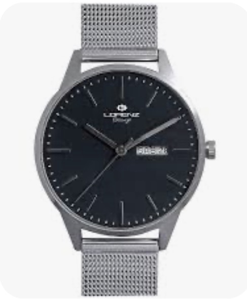 Orologio da polso solo tempo unisex. Cassa rotonda in acciaio diametro 33 mm. con fondello a pressione e vetro minerale. Quadrante nero con indici e sfere acciaio. Cinturino in acciaio tessuto Milano. Movimento al quarzo. Resistente all’acqua fino a 5 atmosfere. Garanzia 2 anni