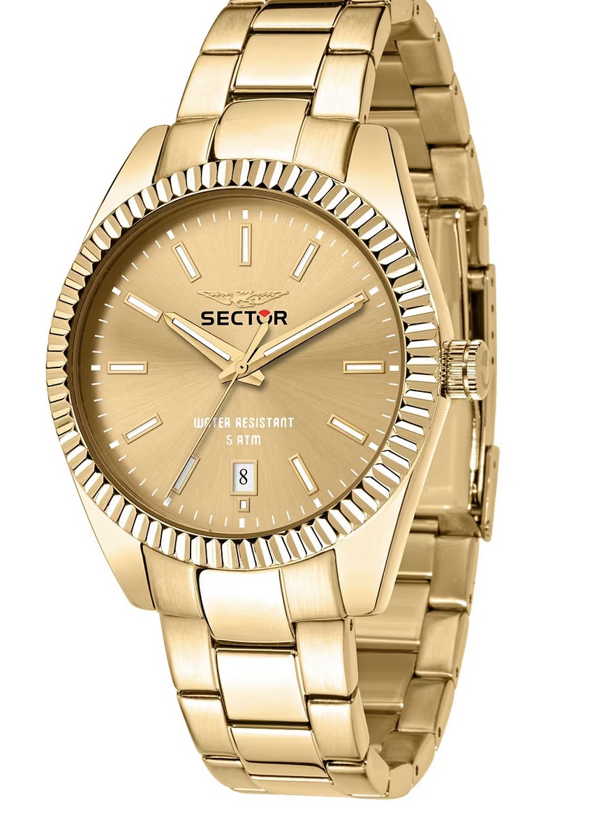OROLOGIO SECTOR 240 – R3253240026 – Sector experience: No Limits, Genere : Uomo, Materiale e finitura cassa: Acciaio, Misura cassa: 41mm, Spessore cassa: 10,80, Finitura cassa: Lucido, Colore cassa: Gold, Vetro: Vetro minerale, Materiale cinturino: Bracciale in metallo, Colore cinturino: Oro, Chiusura: Fibbia diver con blocco sicurezza, Movimento: Quarzo, Water resistant: 5 atm, Garanzia: Ufficiale 3 anni, Ufficiale 3 anni, Ufficiale 3 anni Sector, Confezione: Originale Sector